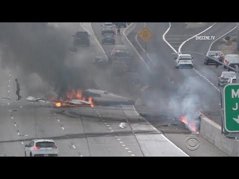 One of the busiest freeways in the country became a crash-landing strip Friday for a small plane. Remarkably, no one on the ground was hurt. John Blackstone has more.