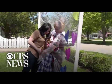A great-grandmother from Illinois missed hugging her family members. So, her granddaughter invented a "hug time" device that lets them embrace safely.